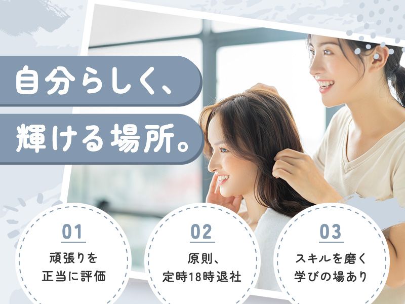アピールポイント \ 実力を正当に評価 / 歩合率に応じた賞与のほか、 成長に見合った昇給制度で、 頑張りをしっかり収入に反映! \ 業務時間内にスキルアップ/ 残業もほぼなく、モデル実習を 通じて代表から直々に技術を 学べる環境を整えています! \ 自分らしさを大切に / 「こうしたい」という声を尊重。 意見が届くオープンな風土で、 みんなで職場をつくっています。 ✨さらにスキルアップしたい方へ✨ 希望者にはプロ講師の外部研修あり。 例えば、東京の技術者のもとへ 出張研修を実施した経験があります。 研修費用は会社がしっかりサポート!