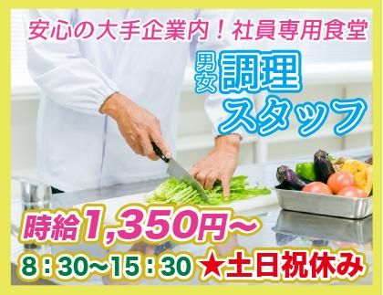 時給1,350円以上 給与詳細 基本給:時給 1350円 〜 ☆☆美味しい賄いあり☆☆ ◆交通費支給(上限/月2万円) ◆完全週休2日制 【給与例】 給与例 【月収】 17万8200円以上可 (時給1350円×1日6h×月~金・週5日/月22日稼働例) ◎ゆとりの8:30~15:30/実6h!退勤時間も早いので身体への負担も少なく長期安定収入可! ◎家庭とお仕事ラクラク両立♪主婦・女性調理スタッフも大勢活躍しています♪