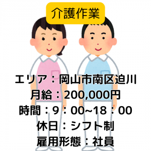 インフォメーション 少人数の職場で、男性・女性活躍中 アットホームな職場で丁寧に教えてくれます 【ビデオ通話での簡単登録始めました】 「must be (マストビー)だからこそ」 お仕事のご紹介特典いろいろ ・子育て主婦(夫)さんや自営業や シフトワーク、 Wワーク希望の方にもマッチした 勤務形態をご紹介。 ・フルタイム、パートタイム、時短勤務など のいろんな働き方の方々を応援! ・日払い、週払いOK!急な出費にも安心の お給与体制があります。(規定あり) ・来社は不要!出張登録OK! あなたのお住まいのお近くのカフェや 喫茶店で登録手続きができます♪ ・学歴不問、あなたのやる気を応援、 お仕事紹介でサポートいたします! ・学生さん、主婦(夫)さんから、 バリバリ稼ぎたい方、 まだまだ働き盛りの50代の方まで、 幅広い年齢層の方々が絶賛活躍中! アピールポイント ビデオ通話での簡単登録可能 must be(マストビー)では多種多様な職種を 取り揃えています。 どんな仕事を探しているかお気軽に お問合せ下さい! 1月は採用強化中! 1月中に応募いただいて 「1月中のスピード入社」はもちろん, 2月以降入社も随時相談承ります!