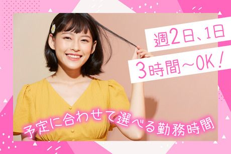 勤務時間 ・勤務曜日:月・火・水・木・金・土・日・祝 ・勤務時間: [1] 09:30~18:30 [2] 14:00~23:00 [3] 14:30~18:30 [4] 18:30~23:00 ・最低勤務日数(週):2日 シフトサイクル:1ヶ月 シフト提出期限:シフト開始の15日前 シフト確定時期:シフト開始の5日前 \\未経験の方も大歓迎!// *週2日~、1日3.5時間~も勤務OK! *扶養内勤務&WワークもOK! <シフト詳細> ・10:30~14:00(平日昼/週2日~) ・18:30~23:00(平日夜/週3~) ・12:30~18:30(土日祝/月1、2日~)