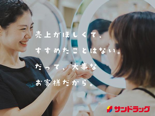 仕事内容 \ \ \ \\ \ \ \ \ //// ///// 【年間休日118日以上/月3日の希望休OK】 【男性の育休取得率84.8%の高水準/復職率100%】 【エリア限定&転居をともなう転勤なし】 【販売ノルマなし】 【月休平均9~10日】 【32歳SV:年収805万円】 【37歳課長:年収960万円】 \ \ \ \\ \ \ \ \ //// ///// あ な た に お 任 せ す る 業 務  ̄ ̄ ̄ ̄ ̄ ̄ ̄ ̄ ̄ ̄ ̄ ̄ ̄ ̄ ̄ ̄ 販売・接客から売場づくりまで。 全国に展開する「サンドラッグ」のスタッフとして 店舗での接客や商品管理、販売、販促企画 従業員(アルバイト・パート)の管理など 店舗運営に関する業務全般をお任せします。 お仕事内容ー ◆商品管理 ◆販売促進企画 ◆販売・接客 ◆従業員(アルバイト・パート)の管理 ◆売上など各種金銭管理業務 など ー 店 舗 運 営 ス タ ッ フ っ て ど こ も 同 じ で し ょ 。 い い え 、 違 い ま す 。  ̄ ̄ ̄ ̄ ̄ ̄ ̄ ̄ ̄ ̄ ̄ ̄ ̄ ̄ ̄ ̄ ̄ ̄ 「売る」のが仕事ではなく、 「助ける」のが仕事になる。 ❖ノルマなしで、お客様とじっくり向き合える ❖「ありがとう」の言葉が、誰かの健康につながる ❖未経験から「頼られる専門家」へ 「家族との時間を大切にしたい」 「地元を離れ、都心で自分の力を試したい」 「もう一度、好きだった接客の仕事に戻りたい」 転職の理由は、人それぞれ。 どんなきっかけでも、私たちは大歓迎です。 その上で、もしあなたが、 「せっかく働くなら、もっと人の役に立つ仕事がしたい」と 少しでも思うなら。 サンドラッグは、 最高の舞台になることをお約束します。 販売職の経験がない? 健康の知識に自信がない? チーム/店舗運営をしたことがない? 大丈夫。 私たちが目指す「町の第2のかかりつけ医」を チームで実現させるため、スタッフ一人一人が輝く場をサンドラッグは整えています。 私 た ち が 「 売 上 」よ り も 大 切 に し て い る こ と 。  ̄ ̄ ̄ ̄ ̄ ̄ ̄ ̄ ̄ ̄ ̄ ̄ ̄ ̄ ̄ ̄ ̄ ̄ ̄ ̄ お客様の「困った」に、本気で寄り添うこと。 私たちは、 お客様を自分の大切な家族や恋人の親だと思って接します。 だから、不要なものを無理に勧めたりはしません。 個人ノルマがないのは、 売上よりもお客様の健康を本気で願っているからこその、 当然の仕組みです。 小規模店舗が多いのも、 お客様一人ひとりと顔なじみになり、 「ちょっと聞きたいんだけど…」といった何気ない会話の中に お客様のニーズやトレンドが隠されています。 あなたの接客経験は、商品管理や販促企画のアイデアとして最大限に輝きます。 お客様とお店をつなぐ、大切な役割を担いませんか? 「 頼 ら れ る 専 門 家 」 を チ ー ム で 育 て る こ と 。  ̄ ̄ ̄ ̄ ̄ ̄ ̄ ̄ ̄ ̄ ̄ ̄ ̄ ̄ ̄ ̄ ̄ ̄ ̄ ̄ 私たちの仕事は、 商品を売ることではありません。 お客様の不安を取り除き、 健康な毎日を支えるチームを作ることです。 だから、 「責任者の仕事の半分は人を育てること」という考えが 根付いています。 15年教育カリキュラムがあることもその一環です。 店長になるには「登録販売者」の資格が必須ですが、 これもお客様に安心を提供するための大切な約束。 店舗運営、資格取得の勉強時間も業務として確保するなど、 会社が全力でサポートします。 未経験から始めた先輩たちが、 今では地域の健康を支えるドラッグストアの店舗運営スタッフとして活躍しています。 「 人 」 が 輝 く た め の 環 境 を つ く る こ と 。  ̄ ̄ ̄ ̄ ̄ ̄ ̄ ̄ ̄ ̄ ̄ ̄ ̄ ̄ ̄ ̄ ̄ ̄ 従業員には、 できるだけお客様と向き合うことに集中してほしい。 その想いから、 IT化による業務効率を徹底的に進めています。 自動発注や電子値札の導入、 毎日配送による欠品防止など、 「人がやらなくていい仕事」はシステムに任せる。 この好循環こそが、 サンドラッグの強さの源です。 身につけた知識は、お客様のためだけでなく、 あなた自身や一緒に働くすべてのスタッフを助ける為にもなります。 最 後 に 、 サ ン ド ラ ッ グ の 想 い と 、 願 い と 。  ̄ ̄ ̄ ̄ ̄ ̄ ̄ ̄ ̄ ̄ ̄ ̄ ̄ ̄ ̄ ̄ ̄ ̄ ̄ ̄ ̄ ̄ ドラッグストアが、街の暮らしを支える 「生活インフラ」となった今。 サンドラッグは、全国すべての町に安心を届けるため、 業界トップクラスのペースで新規出店を加速しています。 同時にEC事業も拡大し、 お客様がいつでもどこでも頼れる存在へと 進化を続けています。 この想いを実現していく、 キーパーソンこそ、あなたです。 この出会いが、 あなたの大好きな街にとって、 あなたがなくてはならない存在になる きっかけになることを だれよりも願い、信じています。