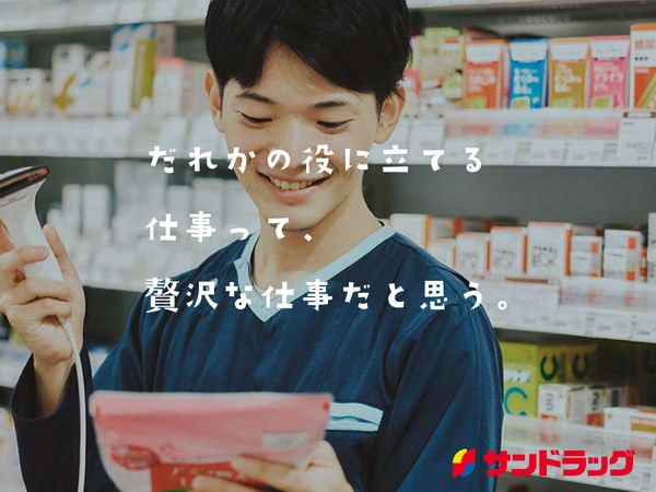 応募資格 【学歴不問】 ※未経験者歓迎/第二新卒者歓迎 \サンドラッグで実現できること/ 〇ノルマに追われることなく お客様第一で仕事ができる。 〇販売スキルと専門スキルを同時に 身に付けられる。 〇登録販売者の資格を取得できる。 └業務時間中に 資格や業務の勉強ができます。 〇店長などポストアップが可能。 └長期に亘り、成長を支援します。 〇町の第2のかかりつけ医のチームの 一員として、地域に貢献できる。 〇プライベートの充実を実現できる。 └月3日の希望休有
