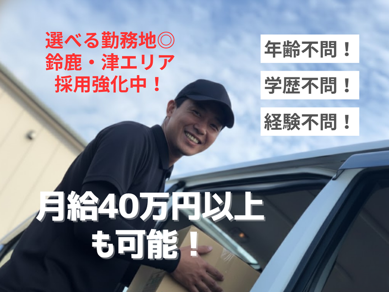 仕事内容 ✅ 未経験からでも【平均月収30~40万円】可能! ✅ 研修ありで安心スタート◎ 先輩の横乗りで丁寧にサポート! ✅ 車両はリース or 持ち込みOK! ✅ リースの場合は、整備費は会社持ち♪ ✅ 日・月固定休みで【週3~4日~勤務OK】 ✅ 寮・社宅(アパート)もご用意できます! \初めてでも安心のスタート体制あり!/ 当社では、未経験から始めたスタッフが多数活躍中! 入社後は、先輩スタッフがマンツーマンで横乗り研修。 荷物の扱い方やルートの組み方など、 基礎からしっかり学べる環境です◎ ■お仕事内容 ┈┈┈┈┈┈┈┈┈┈┈┈┈┈┈┈•• 三重県鈴鹿市内の個人宅へ、 軽貨物をお届けするお仕事です。 ネット通販の商品や日用品など、軽い荷物が中心。 重くても30kg程度(お米など)なので、 女性の方でも安心です◎ ▼配送の流れ 荷物の積み込み(朝) ↓ 担当エリアへ配達 ↓ 集荷や戻り便の対応(夕方) ↓ 終了・帰宅(19~21時ごろ) ※慣れてきたら、19時前に終わる日もあります! ■入社後の研修について ┈┈┈┈┈┈┈┈┈┈┈┈┈┈┈┈•• 入社後1~2週間は、 先輩ドライバーがマンツーマンで横乗り研修。 荷物の扱い方、ルートの回り方、 効率の良い配達のコツまで、 一緒に現場を回りながら丁寧にお教えします! 未経験から始めたスタッフも多数活躍中です◎ ■報酬・働き方 ┈┈┈┈┈┈┈┈┈┈┈┈┈┈┈┈•• 完全出来高制(平均月収30〜40万円) がんばった分だけしっかり稼げる仕組みです! 週3〜4日からOKなので、 「しっかり稼ぎたいフリーターさん」 「収入を上げたい方」にピッタリ! 勤務日:火・水・木・金・土 休日:日曜・月曜(固定) ■働きやすさもバッチリ ┈┈┈┈┈┈┈┈┈┈┈┈┈┈┈┈•• ・ポロシャツ支給あり ・寮・社宅(アパート)完備 ・自社整備工場あり (当社での車両リースの場合は、 車両メンテナンス代は会社負担!) ・リース or マイカー持ち込みOK