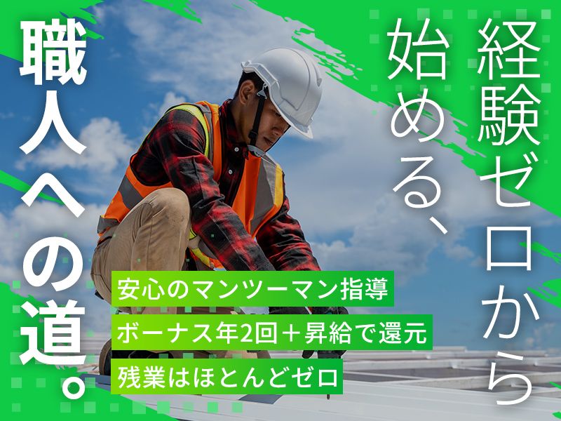 アピールポイント \未経験入社90%以上/ 「建築板金って何?」という方もOK! ベテランの先輩がマンツーマンで指導。 必要な資格は入社後に会社負担で 取得できるので、 ゼロから手に職がつきます〇 ✨Message 仕事は本気、遊びも本気。 そんな最高の仲間がここにいる。 互いに技術を教えあい、 時には冗談を言い合って笑う。 メリハリがあるから、成長できる。 仲間に家族、誇れる仕事を 私たちと一緒に始めませんか? \あなたの疑問にお答え!/ Q1 どんなスタッフが働いているの? ・・・・・・・・・・・・・・・・・・・・・・・・・・・・・・・・・ 未経験入社の先輩も多く、今では 一人前のプロとして活躍中! 頼りがいのある7名の社員が、 あなたの成長を丁寧にサポートします Q2 会社の雰囲気が知りたい。 ・・・・・・・・・・・・・・・・・・・・・・・・・・・ 仕事も遊びも全力で取り組むスタイルで メリハリを大切に取り組んでいます! 50代が4名、40代が2人、 30代が1人、20代が2人活躍中!