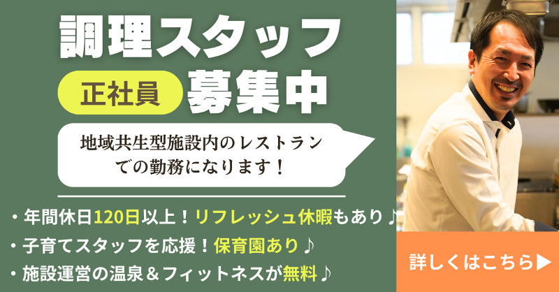 仕事内容: 【お仕事の内容について】 地域共生型施設ソナタリュー内のレストラン「収穫祭」にて洋食メインの調理業務を行っていただきます。 *軽度の障害がある方も一緒に働いております。 *調理業務が主な仕事となります。 *料理の好きな方でも無資格の方でも丁寧に教えます! 【個別のお仕事説明会あり】 「具体的などんな働き方になるの?」 「待遇面をもっと知りたい!」 「自分にあってるのかな?」 こんな疑問にすべてお答えしますのでお気軽にご参加ください。