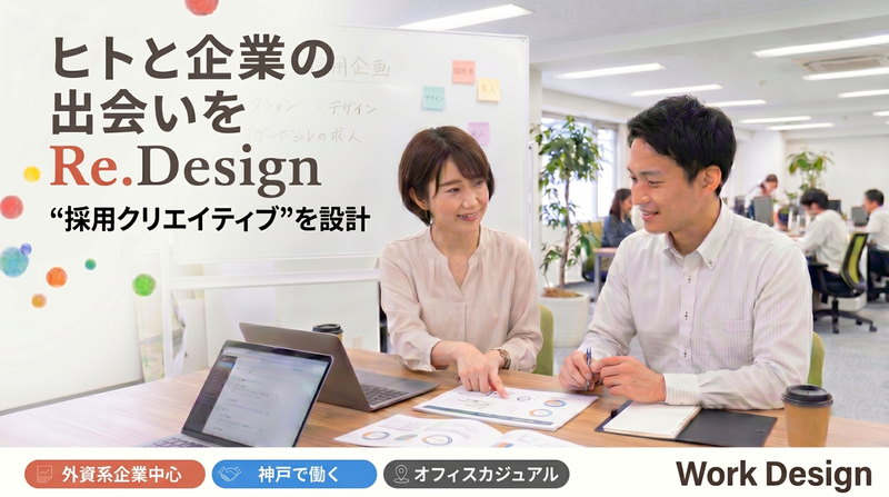 仕事内容 \企業の“採用成功”をデザインする仕事/ ⏩採用サイト・動画・パンフレット等の企画立案 ⏩クリエイティブ制作のディレクション補助 ⏩企業の採用課題の分析・改善提案 企業と求職者の「ミスマッチのない採用」を実現するため、企画〜制作〜効果検証まで一貫して関わるポジションです。 ▼簡単な募集内容▼ 【雇用形態】正社員 【給与】年収:400万円~500万円 【勤務時間】9:00〜18:00 【勤務地】兵庫県神戸市灘区 【募集要件】WEB企画・広報等の経験/AI活用経験 ★この求人のアピールポイント★ ✅️有名大手企業の採用案件に関われる! ✅️営業なし◎既存顧客中心で企画に集中できる環境 ✅️年間休日125日/土日祝休みで働きやすい ✅️AI活用を全社で推進!最先端スキルが身につく ==================== 【どんな会社?】 株式会社ワークデザインは、企業の採用課題を解決するコンサルティング会社です。 新卒・中途・海外の方の採用まで幅広く対応し、採用ブランディング、WEBサイト、動画、SNSなど多様な手法を組み合わせて「企業と人材の最適なマッチング」を実現しています。 設立以来19期連続黒字・無借金経営と安定した基盤を持ちながら、AI活用や新しい採用手法の導入など常に進化を続けています。 【お仕事内容】 企業の採用成功を目的とした企画・ディレクション業務をお任せします。 具体的には ⏩クライアントへのヒアリング(採用課題の把握) ⏩採用ツール(WEB・動画・パンフレット等)の企画立案 ⏩外部クリエイター(デザイナー等)との連携・進行管理 ⏩制作物の品質チェック・コンセプト管理 ⏩採用結果の分析・改善提案 単なる制作ではなく、「どうすれば採用成功につながるか」を考える企画中心の仕事です。 ゼロから何かを生み出すことが得意な方にピッタリ! 《入社後の流れ》 まずはアシスタントディレクターとしてスタートし、先輩のもとで実務を習得。 その後、ディレクターとして制作を主導し、将来的にはプランナーへキャリアアップ可能です。 【会社の魅力】 ✅️営業活動なし!企画・クリエイティブに集中できる ✅️少数精鋭で裁量大!成長スピードが速い ✅️WEB・動画・SNSなど幅広いスキルが身につく ✅️リモートワーク可(週1〜3日程度)