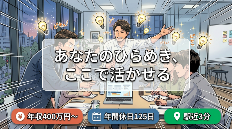 求めている人材 ■広報・WEB企画・制作などの実務経験 ■関係者との調整・ディレクション経験 ■AIツールの活用経験(業務・プライベート問わず) ≪歓迎条件≫ ・採用関連の企画・マーケティング経験 ・クリエイティブ制作に関わった経験