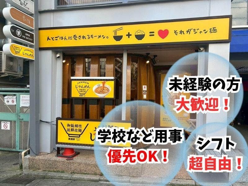 仕事内容 / 主力メンバー卒業に伴う… 第2期オープニングスタッフ大募集! 昨年11月にオープンの綺麗な店内! SNSで話題のじゃん麺! 高校生~しゅふさんまで大募集♪ \ ✨第2期オープニングスタッフ ✨未経験者大歓迎 ✨髪色、ピアス・ネイルOK! ✨賄いラーメン半額! ✨プライベート充実 ✨高校生~主婦(夫)まで幅広く活躍中 ✨レギュラー勤務も大歓迎! とにかく働きやすい環境! 『縛られずに働く方が、毎日楽しいし 頑張れるよね!』 と言ってくれる 社員さんばかりなので 「ピアス・ネイル、髪色も自由にしたい!」 「部活の試合・サークルで休みたい…」 「このくらい稼ぎたい!」 などの”わがまま”にも 柔軟に応えてくれます♪♪ ▼仕事内容 <ホール> ◆接客・ご案内 ◆ドリンクの提供 ◆お会計 <キッチン> ◆調理⇒簡単なものだけです♪ ◆トッピング・盛り付け ◆洗い物 飲食店での経験は不問! できることからお任せするので、 未経験の方もブランクがある方も 大歓迎です♪ ☆★ 第2期オープニングメンバー大募集★☆ 昨年11月オープンでとってもきれいな店内! スタッフは全員ほぼ同じスタートを予定しているので 未経験の方も安心して始められます♪ 「久しぶりのお仕事で不安…」 「新しい環境に馴染めるか心配…」 そんな方も大丈夫◎ 一体感のある職場で、 一緒にお店を作っていきましょう!! ☆★ おしゃれALL自由 ★☆ ・明るい髪色OK ・髪型自由 ・ピアス・ネイルOK ・ひげOK ・制服貸与 ☆★ シフトはとにかく自由! ★☆ 週1日~,1日4hから~勤務可能! なので、 『 学校・サークル・本業・家庭 』 との両立もラクラク♪ 「今週は忙しいから少なめに」 「テスト期間はお休みしたい」 「子供のお迎えの時間と合わせたい」 そんな希望もしっかり考慮いたします! 空いている時間だけ働きたい方や、 Wワーク・副業として スキマ時間を活用したい方にもピッタリ! もちろん、 「しっかりシフトに入りたい」 という方も大歓迎です!! シフトの相談がしやすい環境なので、 無理なく、長く続けられる 働きやすさが自慢です♪ ≫一人一人の個性を 尊重してくれる環境なので、 自分らしくおしゃれを楽しみながら のびのび働きたい方にピッタリ!