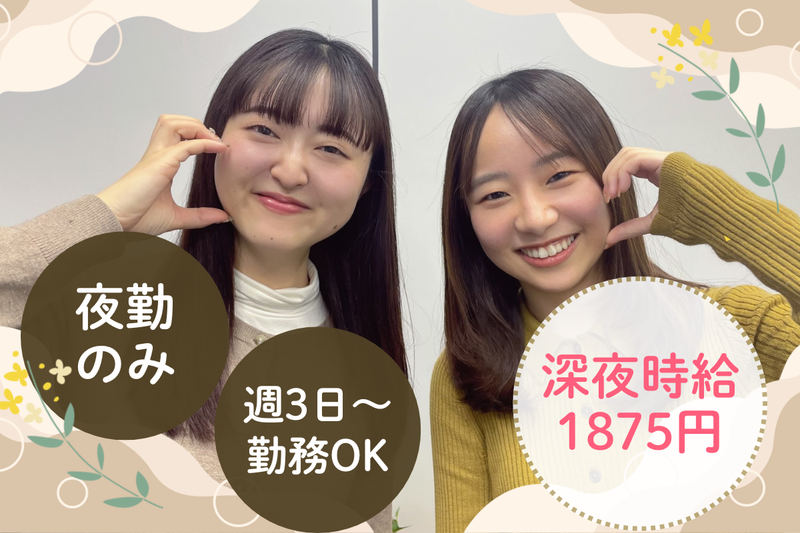 夜勤のみ!22時~7時の勤務で月収31万⭐週3日~もOK