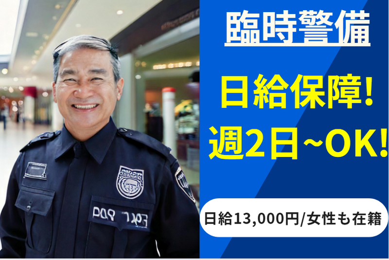 仕事内容 ⭐未経験・経験者ともに歓迎⭐ <週2日~OK!WワークOK!> <昇給・日給保証・日払い制度あり> <丁寧な研修あり(20h/3日)> <若手~中高年・シニア活躍中> <女性スタッフ 活躍中!> <寮完備!固定費を抑えて、手取りを最大化!> <具体的な業務内容> 営業終了後の店内にて、 警備を担当してもらいます。 多数、人気案件あり!! ▶「超有名なアパレルブランド」 →店内清掃時の警備 ▶「金融機関」の →改装・清掃・移転時の警備 ▶各種テナントでの臨時警備 ▶イベントに伴う臨時警備... 清掃業者、他業者の出入りがあり その時間の警備です! その作業が終わったら ご自身の仕事も終わり♪ ⭐嬉しいポイント⭐ ▶早く終わっても、日給保障あり 内容によっては30分~3時間で 終わる時もあります!! 未経験でも安心して取り組めますよ! ✅早上がりでも日給はそのまま ✅20時間の手厚い研修あり ✅若手~シニアまで幅広い年代が活躍中 ✅週2日から都合の良い日に勤務できる