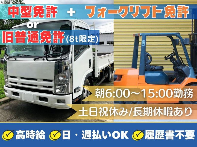求めている人材 ✱人柄重視で採用!✱ <必須条件> ⏩要普通免許(中型8t可) 「免許はあるけど配送経験はない…」 そんな方も大歓迎です!! <歓迎条件> ⏩ドライバーの運転経験者 ⏩フォークリフトの経験者 <こんな方にピッタリ!> ◎長時間拘束はイヤな方 ◎コツコツした作業が好きな方 ◎運転が好き・得意な方 ・…━━━☆・…━━━☆・…━━━☆ ✅経験者・有資格者歓迎 ✅学歴不問 ✅フリーター歓迎 ✅ブランクOK ✅ミドル活躍中 ・…━━━☆・…━━━☆・…━━━☆ ✨こんな経験も活かせます♪ 軽貨物ドライバー、トラックドライバー 配送ドライバー、ルート配送、軽貨物 トラック運転手、運転手ドライバー 牛乳配達、仕分け、配送配達、夜勤 軽作業、ピッキング、倉庫内作業 物流倉庫、仕分け、配送、配達、夜勤 etc...当てはまる方も大歓迎です! ・…━━━☆・…━━━☆・…━━━☆