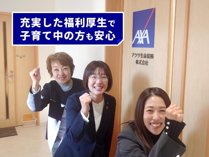 仕事内容 [1] 仕事とプライベートを 両立し活躍できる環境! (厚労省の「プラチナくるみん」認定企業!) お子様のそばにもいたい、 でも自分のキャリアも考えたい! そんな方々と一緒に 仕事をしたいと思っています。 育児育孫時短勤務、 妊婦の時差出勤制度など、 家庭環境も考慮した働き方が実現可能! 中学校に就学するまで 育児育孫短時間勤務として 1日6時間勤務でお子様の 成長を見守ることができます。 [2] ご自身が描いた「夢」「目標」、 豊かで充実した「ライフプラン」を ぜひ実現してみませんか? 私たちアクサ生命保険は、 企業と個人2つのマーケットに 取り組んでいます。 経営者を中心とする 「企業マーケット」に加え、 ご自身のネットワークや人脈などの 「個人マーケット」で ライフプランニングを実践し、 お客様の人生に寄り添うことができる やりがいのある仕事です。 お客様のライフプランを 作りながら、ご自身の夢も かなえてみませんか? [3] 健康経営(R)を通じて 企業の持続的な成長を支え、 地域社会に貢献しています。 アクサ生命では商工会議所・ 商工会との連携で会員企業の 健康経営(R)の導入のサポートをし、 「従業員にとって安心して働き 続けることのできる職場づくり」を 実践しています。 アクサ生命も、従業員が 働きがいのもてる 職場環境づくりを行っています。 [4] 3年間の一貫した 研修カリキュラムで みなさまをサポートします。 3年間はトレーニー期間となり、 さまざまな知識・スキルを 習得しながら、保障給を重視し、 半年毎の責任額を クリアしていくことで、 給与が上がっていく 仕組みとなっています。 正社員昇格後は成果が 反映しやすいように 業績給比率が高くなります。 保障給は、これまでのみなさんの 経験・能力・収入目標から 保障給が決定します。 ―――――――――――――――――――― 【仕事内容】 [1] 商工会議所/商工会会員企業に対する 生命保険による従業員の 福利厚生制度(退職金・弔慰金)、 経営者のリスク管理・事業承継の コンサルティング営業 [2] 中小企業における 健康経営(R)導入・実践支援 [3] 個人のライフマネジメント(R)に基づく、 資産形成などのアドバイスや保険設計 ※「健康経営(R)」は NPO法人健康経営研究会の登録商標です。 ※「ライフマネジメント(R)」は アクサ生命保険株式会社の登録商標です。 【1日の流れ (例)】 09:15/ 朝礼開始 09:30/ 営業所長・スタッフへの事前相談など 10:00/ 担当事業所への訪問 16:30/ 活動報告入力、明日の準備、 営業所長や主任への報告など 17:00/ 終業 【先輩のお話を聞いてみませんか?】 アクサグループは「磨き」「鍛え」 「繰り返す」ことでスキルを 身に付けていただくことを めざしています。3年間一貫した 研修カリキュラムでサポートし、 生命保険の基礎と商工会議所・ 商工会マーケット、 コンサルティングスキルなどを しっかり学んでいただきます。 みずから、主体的に前向きに 学び取り組むことで、生命保険業界や 営業職の経験がない多くの先輩社員が、 現在大活躍しています。 これからの人生の選択の 1つにしていただくためにも、 一度、お気軽にご連絡ください。 【弊社の紹介】 会社名:アクサ生命保険株式会社 従業員数:8,147名(2024年年度末時点) 事業内容:生命保険に関する業務
