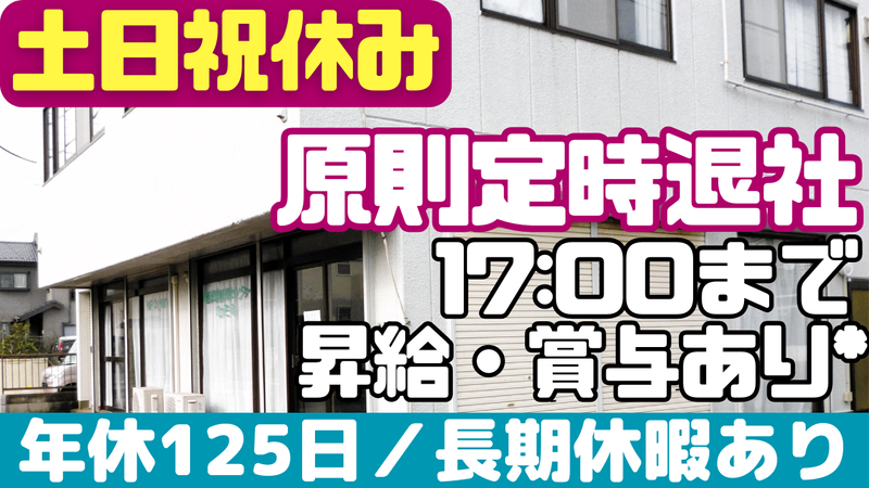 賞与あり〈土日祝休み〉残業なし/17時まで定時退社♪
