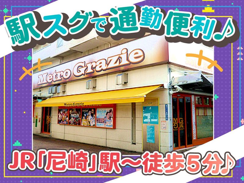 職場環境 ●尼崎アミング潮江商店街の中にある、地元でおなじみの「メトログラッチェ・スロット専門店」♪ ●フリーター、大学生、主婦など、男女ともに活躍中! ●JR「尼崎」駅~徒歩5分の駅チカ!その他、JR「塚口」駅~徒歩28分、阪神「杭瀬」駅・「大物」駅~徒歩32分