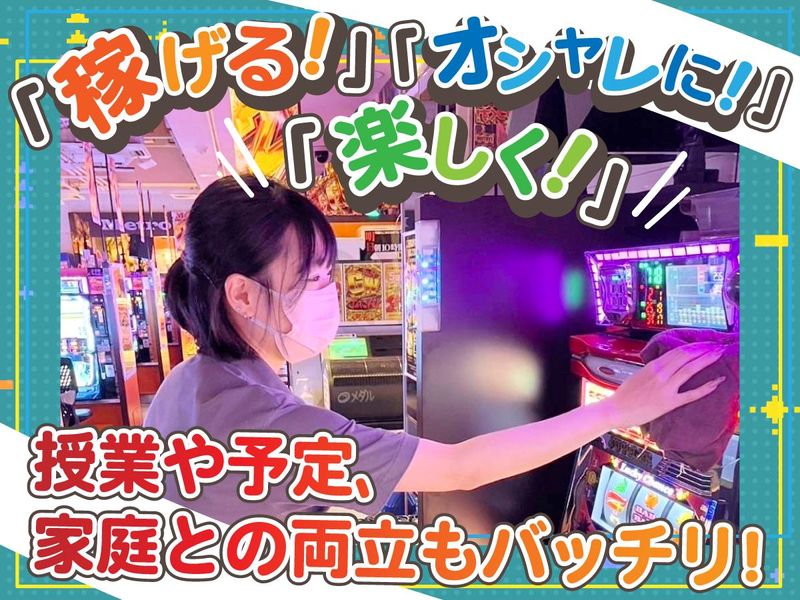 仕事内容 \★未経験大歓迎★/ ●パチンコ・スロット専門店でのホール・カウンタースタッフ♪ ●覚えやすい内容♪お客様へのご案内や景品交換などなど、ホール・カウンターのお仕事です! ●未経験から始めやすい♪楽しい先輩たちが丁寧に教えてくれるので安心☆ ●履歴書不要でスグに働き始められます♪ \★週1日~希望シフト相談OK★/ ●かなり融通がききやすい!時間の相談も可能です! ●授業、家事、予定との両立にもバッチリ♪ ●自分のペースで適度に入りたい、という方にも相性ばっちりです! \★最大時給1813円★/ ●レギュラー勤務でどんどん稼げる高時給! ●Wワークにもピッタリ♪