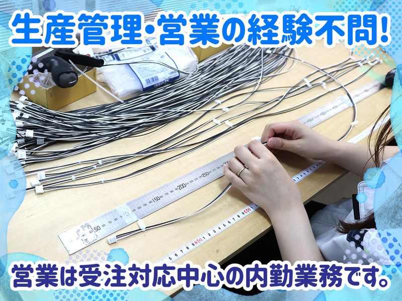 求めている人材 《営業や生産管理未経験も歓迎》 《異業種・異業界からの転職も歓迎》 【必須】 ・WordやExcelの基本操作ができる方 ◎経験不問 ◎知識不問 ◎資格不問 ◎未経験歓迎 ◎第二新卒も歓迎 ◎UIターンも歓迎 ◎中途入社50%以上 【こんな方におすすめ!】 ・モノづくりに関わる仕事がしたい方 ・ニッチな業界に興味がある方 ・昔からコツコツ頑張れるタイプの方 ・コミュニケーションを苦に感じない方 ・初めてのことでも前向きに取り組める方 ・日勤で土日休みの環境がいい方 【下記当てはまる方は特に歓迎】 ・電気・電気工学・理工学系の 学科や学校を卒業された方! ・ハーネスメーカーでの経験がある方 ・工場、製造業界での経験がある方 ・家電・電気製品に興味のある方 製造業での正社員の経験だけでなく アルバイト・パート・派遣社員での 製造業経験も歓迎したいと思っています。 その他、梱包やピッキングなどの 倉庫内作業の経験も活かせますよ。