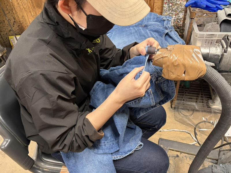 児島ジーンズの加工スタッフ