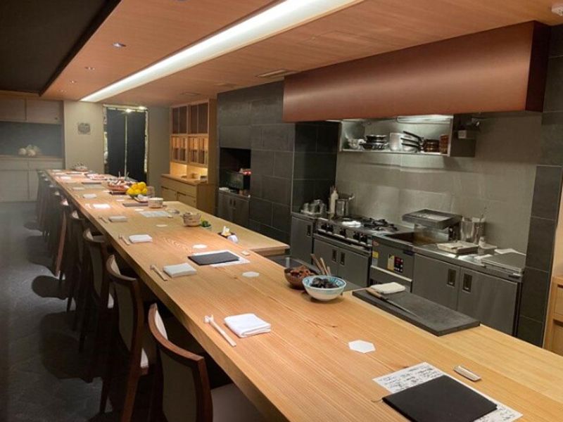 職場環境 旬の食材を使用し、好きなものを好きなだけお楽しみいただけるアラカルト専門店です。その日の食材を見て、お好きな調理法で調理いたします。杉の一枚板の広々としたカウンター席は、席と席がさりげなく離れており、落ち着いてお食事を楽しんでいただける造りになっています。