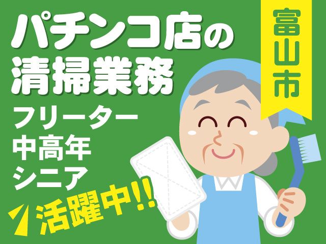 仕事内容 富山市田中町にあるパチンコ店の 清掃スタッフ募集中! ////////////////おすすめポイント//////////////// 〇シフト自由! 〇週2日~OK!日数・曜日は応相談 〇平日のみ/土日のみOK 〇清掃業未経験の方も大歓迎! 〇Wワーク・副業にピッタリ! 〇フリーター・中高年活躍中 〇スキマ時間を有効活用 〇扶養範囲内で働きたい方へ ////////////////////////////////////////////////////// <お仕事内容> パチンコ店の清掃業務を お願いします。 ・店内外の掃き掃除 ・ゴミ、吸殻回収 ・トイレ清掃 ・ホール内の巡回 など モクモクと作業するのが得意な方や 人と話すのが苦手…という方にも おすすめです! 勤務日数や曜日は ご自身の都合に合わせてシフトを 組みます! ※Wワーク、扶養内勤務の方も活躍中 お仕事はイチから丁寧にお教えします。 先輩社員のほとんどが清掃業未経験から スタートしていますので 安心してご応募くださいね。 50代、60代以上の方も活躍中の お仕事をしたい方にもおすすめ! - ご応募はWEBから24時間受付中! 面接1回! このくらい稼ぎたい、 この曜日に勤務したい、 平日のみ/土日祝のみなど ご相談やご質問も受け付けています!