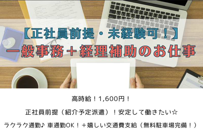 【高時給・正社員前提】経理は“補助レベル”でOK!事務メインのお仕事です