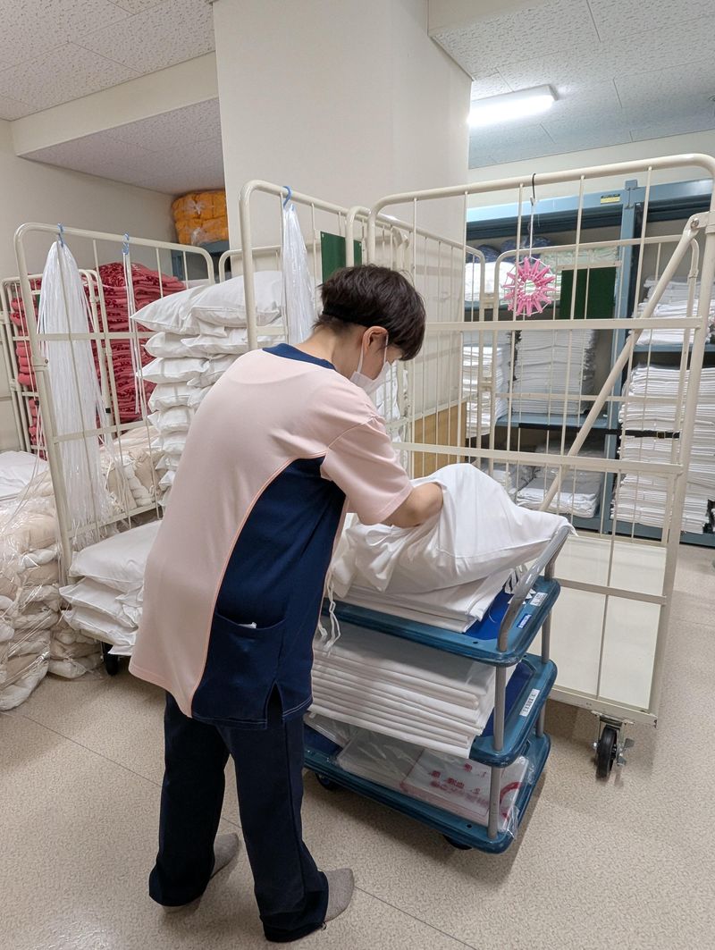 仕事内容 -☆★アピールポイント★☆- ■家事と両立しやすい時間帯で働けます ■未経験でも安心の丁寧なサポート体制 ■ミニボーナスなど嬉しい手当が充実! ■ライフスタイルに合わせて働けます <仕事内容> 病院内のベッドメイクやリネン類の管理をお願いします。 週ごとに作業がローテーションするため、 飽きずに取り組めるのが特徴です。 未経験の方も安心して始められますよ! ■ベッドシーツの交換(2人1組で実施) ■退院後のベッドメイク・クリーニング手配 ■タオル等の仕分け・洗濯・乾燥・たたみ ■各病棟へのリネン類の補充 <働くスタッフにインタビュー> 実際に働く職場のスタッフにインタビューしてみました 「最初は少し不安でしたが、先輩方が丁寧に教えてくれたので、すぐに慣れることができました。 チームで協力しながら進める作業が多く、困った時は助け合えるのが心強いです。 子どもの急な発熱などでも柔軟に対応してもらえるので、 家庭と仕事のバランスがとりやすく、とても働きやすい環境だと感じています。 ミニボーナスがあるのも嬉しいポイントですね!」 <職場環境> ■20~50代の女性スタッフが活躍中 ■協力体制がしっかりしており安心 ■長期で安定して働ける環境です <入社後1ヵ月何をする?> 入社後3ヶ月間は研修期間として、OJT形式で業務を習得します。 最初の1ヶ月は、先輩と一緒にシーツ交換などの簡単な作業から始め、 仕事の流れやコツをじっくり学びます。焦らず、 あなたのペースで一人前を目指せる環境です。