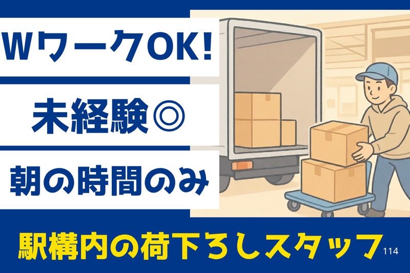 仕事内容 ・:*。・:*:・。:・。・:*:・。:・。・:*:・。:・。 ⭐Wワーク・副業としてサクッと稼げる ⭐日給3000円~!高収入も目指せる◎ ⭐週2日~OK!私生活も充実♪ ⭐月毎のシフト制で予定管理ラクラク ⭐駅構内なので、通勤ラクラク! ・:*。・:*:・。:・。・:*:・。:・。・:*:・。:・。 - お仕事詳細 - 配達ルートはあらかじめ決まっており、 1日でまわる店舗数は3店舗ほどです! *――――――――――* お仕事の流れ *――――――――――* ▼Step1 駅構内にある「納品専用エリア」に集合 ▼Step2 すでに到着しているトラックから荷物 (段ボール箱)を台車に積み替えます。 ▼Step3 台車を押して、 駅構内の各飲食店に順番に納品 ▼Step4 配達を終えたら、 台車を所定の場所に戻して終了。 *――――――――――* 扱う荷物について *――――――――――* 飲食店向けの食材・飲料・調味料・ 紙製品(おしぼり・カップなど)など、 軽量の箱が中心! 1箱あたり5〜10kg程度ですので 無理なく働けますよ◎
