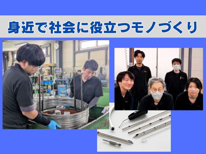 仕事内容 ――仕事も、家族の時間も大切に 未経験から安定の正社員へ―― 新しいモノづくりのカタチ! 託児所・送迎・有休100%で理想の働き方を! 「子どもとの時間を大切にしたい」 「安定した収入で家族を支えたい」 そんな想いを持つ子育て世代の 20代・30代・40代社員が多数在籍しています! 医療器具や文房具に使われる、 身近で社会に役立つモノづくりを始めませんか? ⏩ ワークライフバランスは最高水準! ・完全週休2日(土日祝)×年休120日以上 ・有給取得率は100%!旅行も帰省も安心◎ :家族のイベントや子どもの行事にも しっかり参加できます! ・産休・育休実績多数:産休100%、育休75%! :男女問わず長く働ける環境です◎ ⏩ 子育て世帯に嬉しい充実のサポート! ・送迎付きの無料の社内託児所(KIC)あり :生後半年から預かりOK! ・家族を大切にする気持ちを応援する制度◎ :配偶者の誕生日に花束、お子様の入学時に 図書カードを贈呈しています! ================== 【お任せするお仕事】 ステンレス製の細いパイプをつくる 製造スタッフのお仕事です。 医療器具やシャープペンのペン先など、 身近な製品に使われています。 具他的には… (造管)ステンレスの板を細いパイプに加工 (肉結)サイズや厚みを整える (洗浄・焼鈍)専用の機械で洗浄や温度調整 (伸管・直線)直線に整えて2mサイズにカット (検査)傷や曲がりがないかをチェック など ※配属により運搬作業や、簡単な計算、細かな作業が発生する場合があります。 ※面接の中でご本人の適性を見て、相談をしながら配属先を決めております! すべての作業を担当するのではなく、 配属部署に応じて専門スキルを磨いていただきます! ■配属部署 社員の約70%が在籍する製造技術部で、男女問わず活躍しています。(男女比率6:4) ■キャリアステップ 将来的には、納期・在庫管理や部門のリーダーといったポジションにも挑戦可能です! どの作業もマニュアルがあり、未経験でも安心! 先輩が横について丁寧にサポートするOJT形式で 必要な技術を習得していただくので、 製造業・軽作業の仕事が初めての方でも 安心して始められます! 未経験スタートの先輩もたくさんいるので、 質問や相談もしやすい環境です。 【私たちの想い(代表:手島より)】 「社員が安心して長く働けるロールモデル企業になりたい」 その一心で、金融教育の実施や託児所の開設など、 時代に合わせた社内改革を進めてきました。 未経験からでも、着実にステップアップし、 家族との時間を守りながら成長できる。 そんな場所を、私たちは提供し続けます。