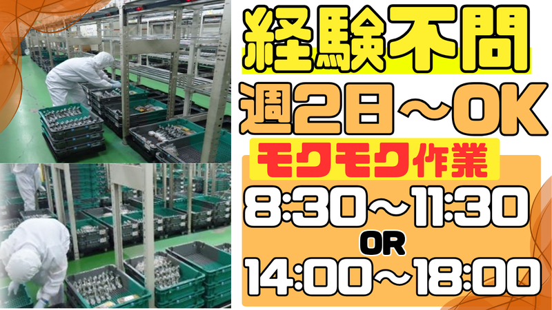 仕事内容 【シフト】週2日~OK〈半日勤務もOK〉 【未経験】スグに覚えられる単純軽作業♪ \ コツコツ・モクモク簡単軽作業 / ╭━━━━━━━━━━━╮ イチオシpointはここ! ╰━━━━━v━━━━━╯ ✅ 午前のみ・午後のみの半日OK ✅ 週2日~OK ✅ 日祝は時給50円UP! ✅ 平日のみ・土日のみOK ✅ 扶養内勤務やWワークにぜひ! ╭━━━━━━━━━━━╮ 未経験の方も積極採用中 ╰━━━━━v━━━━━╯ 簡単な大手コンビニ向けのお弁当の 仕分け作業をお任せ! ①店舗からの発注数に応じて、 必要な商品とその数量を取り出す! ▼ ②出荷する専用ケースに商品を入れる! 終わりです♪♪ どうですか??超カンタン作業! しかも取り扱うのはコンビニのお弁当 いつも皆さんが持っている重さ・大きさ なので負担は一切ありません◎ ╭━━━━━━━━━━━━━╮ 綺麗な工場内♪モクモク作業 ╰━━━━━━v━━━━━━╯ 綺麗な工場でのお仕事です✿ コツコツ・モクモク作業が 好きな方にもお勧めのシンプル業務! 自分のペースで集中して作業をしながら 効率よく稼げるチャンス☆ お気軽にご応募くださいね!