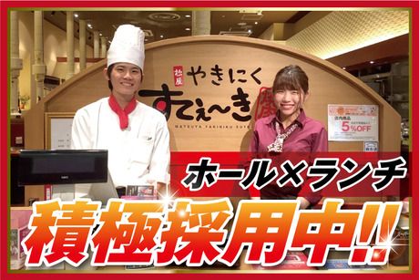 仕事内容 ◆ <ホール>の具体的なお仕事は? ◆ ★来店されたお客様のご案内 ★オーダー取り ★お料理やドリンクの提供 ★レジ業務 ★席のセッティング など◎ *マニュアル完備! *手順に沿って覚えられるので安心◎ *飲食未経験でも安心スタート! *ワンランク上の接客が身に付きます。 *あなたの笑顔をお客様へお届け♪ ◆ 扶養内OK!シフトの自由度高め♪ ◆ 週1日~、1日3h~なので、家事・育児と両立しやすいと好評! 「お子さまを送ってから…」「学校から帰ってくるまで…」 「ちょっとしたお小遣い稼ぎに…」など、なんでもOK♪ 急なシフト変更にも対応しているので、お子様都合の休みも◎ 扶養内勤務応援!ご希望の方はお気軽にご相談ください。 ◆ “やきにくすて~き”ってどんなお店? ◆ *ボリューム満点!* 厚切りのお肉に秘伝のタレをつけて 鉄板で香ばしく焼きあげました♪ たっぷりお召し上がりいただくことを コンセプトに、 年齢・性別を問わず 多くのお客様に「新しい松屋の味」を ご提供しています! ◆ テレビやメディアからも注目企業! ◆ ★懐石料理風の肉料理 ★電車で料理をお届けする焼肉店 ★ヘルシーな蒸し料理 etc. 今までにない味・店作りにこだわる株式会社松屋。 新たなチャレンジを続ける当社を、 一緒に盛り上げてくれるスタッフを大募集! ★飲食・接客未経験の方も大歓迎! ★しっかりフォローするので安心してくださいね♪