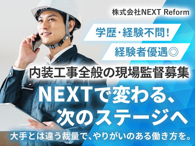 職場環境 株式会社NEXTReformはリフォームや原状回復の内装工事を専門とする会社です。 現在、正社員を募集しております。(雇用内容に関して相談可) 日常生活における趣味や経験を活かし、内装工事のスキルを修得しながら、 イチから成長できる環境です。 喫煙所:喫煙所あり(屋外) 事務所には倉庫内に喫煙スペースがあります。 現場では現場のルールに沿った場所で喫煙していただきます。
