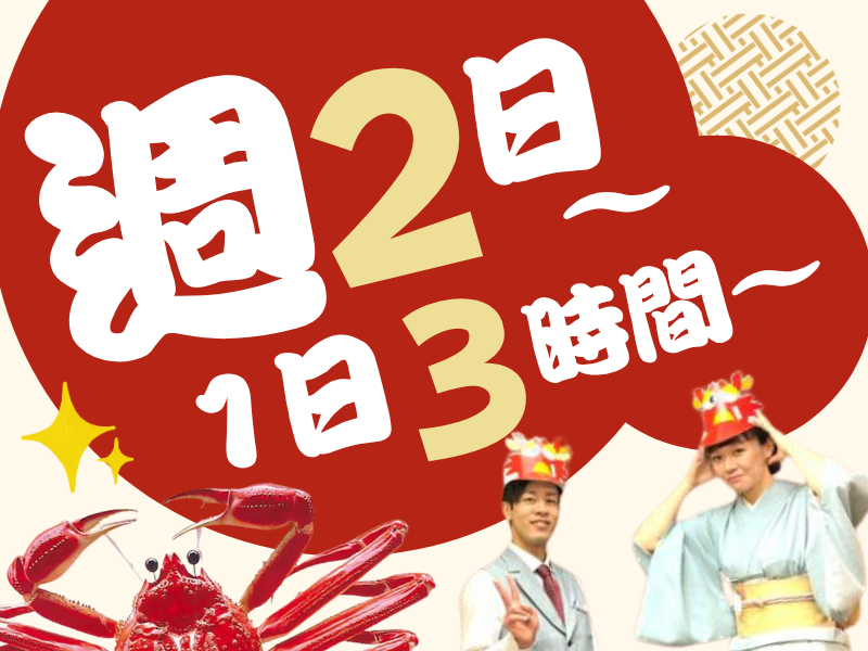 仕事内容 \ 調理経験不要! / 働きながら学べる、 大阪の老舗【かに道楽 網元別館】 の調理スタッフ大募集! 包丁の使い方や、キレイな盛付け方法、 野菜の下ごしらえなど、 未経験でも働きながら覚えられます◎ 【具体的には】 ・野菜洗いやカット ・お料理の盛付け ・食器やグラスの洗浄 …など シンプルな作業が多く、 分業がしっかりしているので 「ホールもキッチンも全部やって」 ということは、ありません◎ ※うつわや盛付けの作業は学ぶことが多いため、 定期的に勤務できる方の方がスムーズに慣れます。 ‐‐‐ ✨このお仕事のポイント✨ ✅週2日~シフト相談歓迎 ✅学生、主婦、フリーターなど幅広く活躍中 ✅金曜日に入れる方は優遇◎ 【Q&A】 Q:普段料理をしないので不安です… A:大丈夫! 先輩スタッフの8割は未経験スタート。 最初は洗い場から始めて、 徐々に揚げ物や副菜の調理補助に チャレンジできます! カニの調理など難しい作業は 社員が担当するので、 安心してスタートできます★ ✨スタッフインタビュー✨ 道具の使い方や調理のコツを 一つひとつ丁寧に教えてもらえるので、 毎日が発見の連続です! バイトを通して自分の成長を実感でき、 親にも「最近、変わったね」と言われました◎ キッチン対応をするフリーターNさん (男性/24歳)の場合 ‐‐‐ ~ お客様について ~ 常連さんやファミリー層、 インバウンドなど、 様々な方が来店します。 語学力を活かしたい方や、 人と触れ合うこと・ 子どもが好きな方も歓迎です♪ ~ これから働く方へ ~ 働くことはお金を稼ぐだけではありません。 ・学校では出会えない人とのつながり ・マナーや礼儀の習得 ・自分の成長を感じる瞬間 こうした体験を【かに道楽 網元別館】 で感じていただけます◎