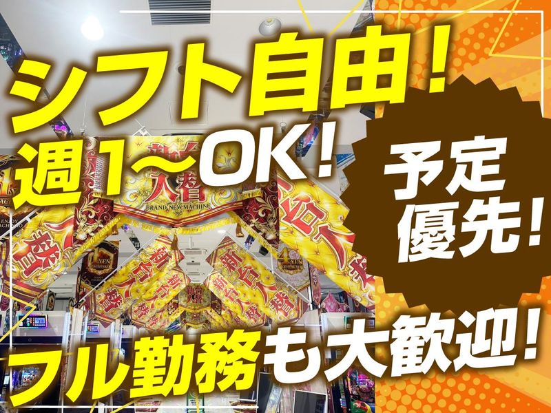 仕事内容 ✧*˖✧⋆˖*✧⋆˖✧⋆˖✧⋆˖✧*˖✧⋆˖*✧⋆˖✧ 地域でもトップクラスの高時給♪ !!最大時給は2000円!! 自由シフト×おしゃれOKで快適勤務! 土日祝日は更に時給+150円アップ!! ✧*˖✧⋆˖*✧⋆˖✧⋆˖✧⋆˖✧*˖✧⋆˖*✧⋆˖✧ 多くのスタッフが未経験からスタート! 入社後は基礎から丁寧に教える体制です。 店舗は広く、スタッフの人数も多め。 分からないことがあっても すぐに周りに聞ける環境です! ==================== ■仕事内容 ホールでの接客や カウンターでの賞品交換がメインです。 お客様のご案内や賞品の補充・陳列など、 決まった流れの中で動ける仕事が中心。 全台「各台計数機」完備のため、 重たい玉運びなどの力仕事はありません。 体力的な負担が少なく、 男女問わず長く続けられる環境です◎ ==================== ■職場の特徴 このお店の強みは「働きやすさ」と「稼げる」 が両立できるところ◎◎ 最大時給は2000円! また、シフトの自由度が高く、 週1〜の中で 自分の予定に合わせて働けます。 「短時間でしっかり稼ぎたい」 「テスト期間は勉強に集中したい」 「長期休みはしっかり稼ぎたい」 学生やフリーターなども、 それぞれのペースで 無理なく続けられる環境です! ==================== ■こんな方におすすめ *アルバイトでもしっかり稼ぎたい *自分の時間を大切にしたい *おしゃれを我慢せず働きたい *一人で黙々と動くより、 チームで働く方が合っている ==================== 「正社員並みに稼げるのに、 ムリなく続けられる」 そんなバランスの良さが魅力です。 収入・自由・職場環境のどれも 妥協したくない方に、ピッタリな環境! あなたからのご応募、お待ちしています◎