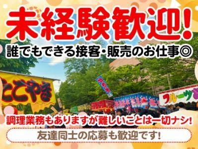 仕事内容 1月9日~1月11日までの十日えびすでの短期のお仕事♪ヽ('▽'*) ◎1日のみや単発も相談OK! ◎3日間を通しての勤務もOK!しっかり稼ぎたい方も歓迎です! お祭りやワイワイするのが好きな方は楽しく働けますよ! <<未経験スタートも大歓迎です!>> 十日えびすで賑わう神戸市兵庫区の柳原えびす神社(兵庫区西柳原町)の屋台で、誰でもできる接客・販売をお任せ♪ 調理業務もありますが、難しいことは一切ナシ◎ 駅からも近いので通勤も便利です! 勤務開始日や期間などもお気軽にご相談して下さい♪ 新しい事を始める前は、不安も多いかと思います。 20代以上の男女を中心に活躍中!採用枠たくさんあります!(>▽<)! 未経験OK!大学生活躍中!フリーター活躍中!接客好き・人と接することが好きな方大歓迎! 高校生も活躍中!友達同士も歓迎!