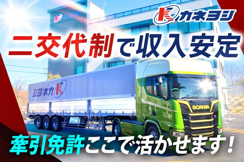 【仕事内容】 配送や倉庫作業など、総合物流サービスを展開する当社にて、ドライバー業務を担当していただく新スタッフを募集します。人員の拡充を通じて、休日数の増加や有給休暇をより取りやすくするための増員になります。 【カネヨシならではの魅力】 ・設立50年の実績で安心感抜群、業績も好調! ・文化祭や災害支援など地域貢献にも参加中 ・仕事とプライベートとの両立が叶う職場 ■具体的なお仕事内容 牽引免許が必要なセミトレーラー乗務員を募集しております。是非、経験や資格を活かしてお仕事をしてみませんか? 【輸送エリア】 関東エリア中心。たまに中京エリア ※しっかりと運行管理がされているので、無理なスケジュール輸送はありません。 【配送する商品】自動車部品を中心に一般貨物 【リフトを使うので手作業はゼロ】 手作業不要!荷物の積み下ろしにはリフトを使用するのでスムーズに作業を進められます! 【管理職へのキャリアアップも可】 数年ご勤務後、管理職に昇格するチャンスがあります。キャリアアップをお考えの方、ぜひご相談ください。 ====================== フォークリフト免許の取得を補助! ====================== フォークリフト免許がない方もご安心ください。当社が免許取得をサポートし、費用半額を当社が負担いたします。 ================== チーム・組織体制について ================== あいち女性輝きカンパニーにも認定されている当社。男性・女性ドライバーに快適な環境とフォローし合う社風が根付いています。 ・会社の雰囲気の良さ ・お給料や待遇の納得感 ・転職者が活躍しやすい環境 が決め手となって入社した社員がたくさんいます。経験と資格を活かせる仕事がしたい!安定した企業に転職したい。と思っている方、是非ご応募ください。