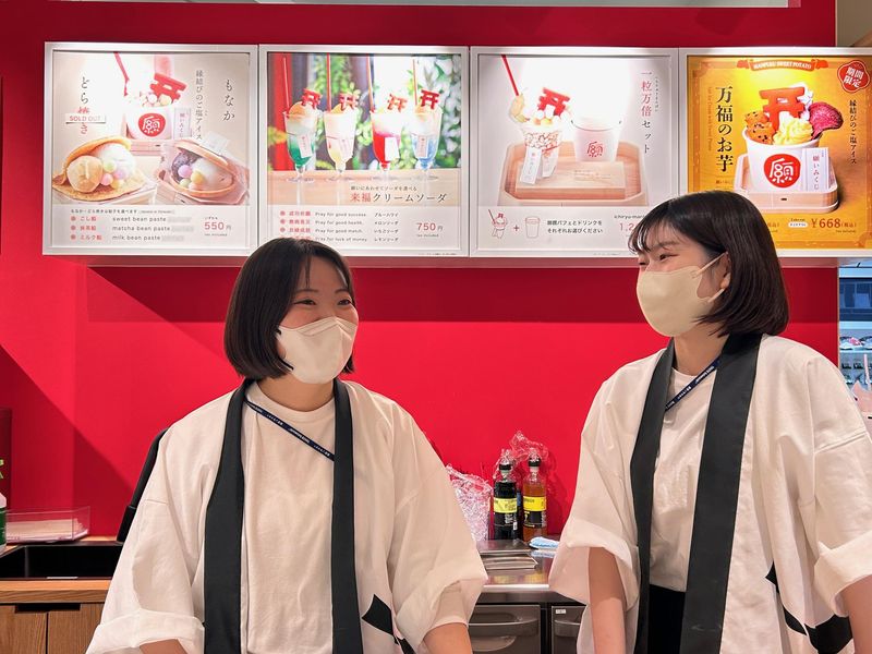 仕事内容 【ソラマチ勤務】和カフェ&縁起物ショップの接客スタッフ|未経験OK/残業ほぼなし/賞与年2回 \日本文化を伝える、落ち着いた接客のお仕事です/ ・東京ソラマチ内にある “和カフェ × 物販” の店舗で、 縁起物の魅力や和の文化を届けながら、ゆったりとした接客を行うポジションです。 ・観光客が多く、海外のお客様との交流もあります。 20・30・40代が活躍中で、全員が未経験スタート。 「落ち着いた接客がしたい」「飲食か販売、どちらも経験してみたい」 そんな方に選ばれている職場です。 【仕事内容】 <お店について> パフェや和紅茶が楽しめるカフェと、縁起物の雑貨を扱う物販スペースがひとつになった店舗です。 “一粒万倍セット” に代表される縁起メニューなど、日本文化の魅力を伝えるお店として多くのお客様が訪れます。 <主なお仕事> ※未経験でも先輩が1つずつ教えるので安心! ・カフェでの注文受付、会計 ・パフェ・ドリンクなどの簡単な調理 ・縁起物の説明や物販接客 ・売り場の整理、陳列、清掃 ・待ち列のご案内 など レジだけ・調理だけではなく、 カフェと物販の両方に関われるため、幅広い接客スキルが身につく環境です。