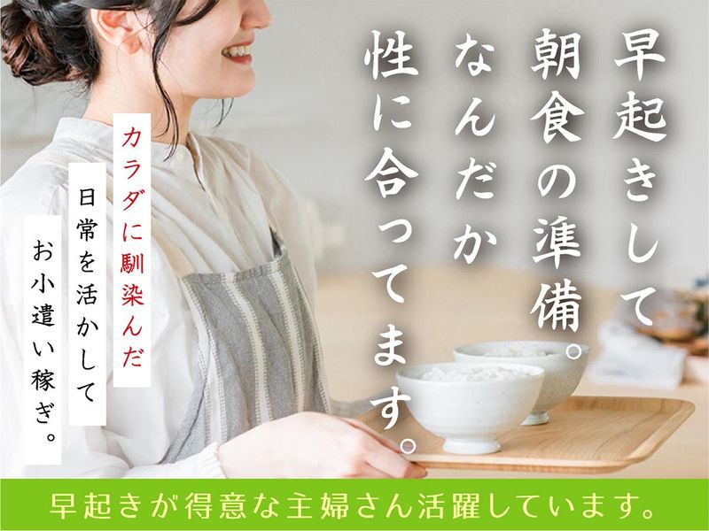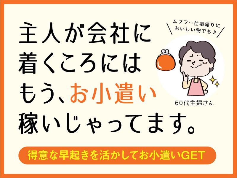 勤務時間詳細 05:30~09:30(実働4時間) ★週2日~シフト相談OK! ★扶養内勤務可能♪