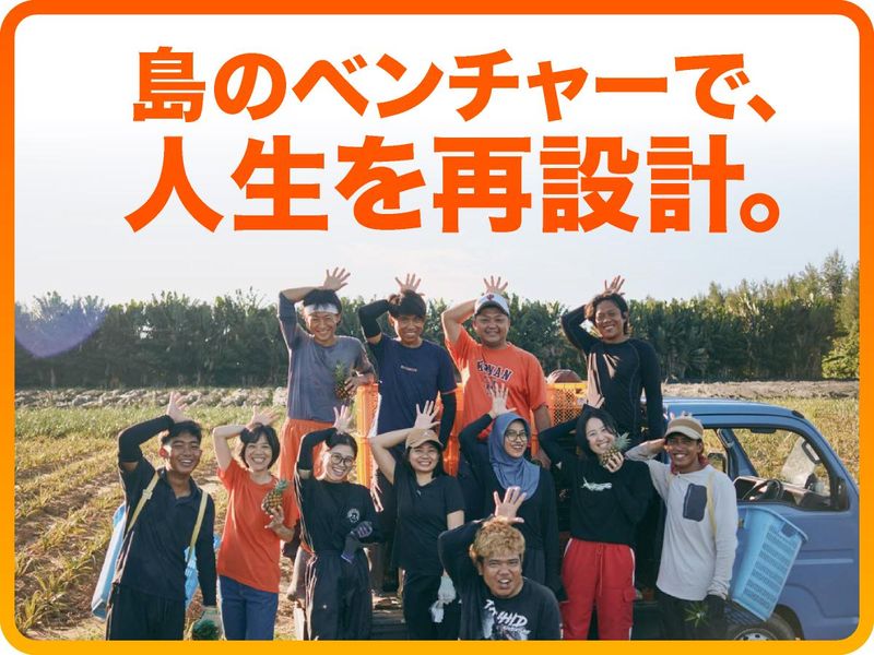 仕事内容 ★- 沖縄・西表島のパイナップル農園で、 「事務×SNS×島暮らし」 -★ 私たちが必要としているのは、 「今日はコレをやってみます!」 「整理整頓しときました!」 自分から率先して動ける人。 島の小さな会社です。 事務職といっても、 役割はひとつではありません。 庶務、入力業務、総務などを軸に、 あなたの得意分野を伸ばしながら、 どんどん新しいことに チャレンジしてください。 ゆくゆくは SNS発信や会員さん向け会報誌作成など クリエイティブな仕事にも挑戦できます。 あなたの当たり前や小さな疑問、 気づきやアイデアが、 そのまま売上につながり、 ブランドとして話題になる。 西表島で働き暮らしながら、 そんな特別な体験をしてみませんか。 ★- はじめまして。 アララガマ農園代表の池村海仁です。 -★ 世界自然遺産にもなった西表島は、 人口わずか2,500人の小さな離島。 この島でパイナップル栽培に挑むのが、 私たち「アララガマ」農園です。 社名は「不屈の精神」を意味します。 大自然の恵みに感謝し、 時には厳しさと直面しながら、 完熟パイナップルとマンゴーを 35年作り続けてきました。 代表品種「ピーチパイン」は、 三つ星ホテルや百貨店へ、 年間21万玉を出荷。 西表島の観光客は年間25万人。 農園の目の前は 島で一番人気のビーチです。 ギャラリー企画、製塩事業、 バニラ栽培、コラボ商品企画 ……次々とやりたいことが閃きます。 一方で、 農業全体の未来は決して安泰ではありません。 就労人口減少、高齢化、 後継者不足、気候変動。 だからこそ、 挑戦を止めません。 島の未来と可能性を見据えた、 極秘プロジェクトも準備中です。 ★- 仲間一人ひとりに、“挑戦心”が 芽生えるベンチャー農園。 -★ 最近、新しい仲間が2名入社しました。 (一人は博多。一人は北海道から) 「ECサイトのこの部分改善しましょう」 「次は島のPRイベントやりませんか」 そんな意見が飛び交うようになり、 社内はとてもいい雰囲気になっています。 また、畑の収穫や工場チームには、 インドネシアの若者たちもジョインし、 果物作りに対する真剣な眼差しに、 こちらが襟を正すことも。 私は日頃から「挑戦」という、 姿勢を大切にしています。 当社では自ら考えて行動した失敗なら、 挑戦しないことより断然評価します。 西表島には、 満員電車も高層ビルもありません。 朝は青い海。夕日は真っ赤に染まり、 夜は満天の星が輝く。 流れるのは島時間。 どんな小さな“挑戦”だって構わない。 ここでしかできない“挑戦”もある。 アララガマ農園は、 あなたの「やってみたい」が、 きっと叶えられる場所だと思います。 少しずつでもいいから、 「未来を創りたい」と思える人と、 出会えることを楽しみにしています。 【移住サポート】 ✅家具・家電付寮完備 ✅車・カヌー貸与 ✅資格取得支援あり ✅フルーツ食べ放題 ✅有給年間30日 身一つで来られます。