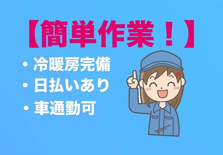 仕事内容 3交替勤務のお仕事!未経験OK!少人数での作業! 食品の検品・梱包作業 未経験でも大丈夫です◎ 具体的には・・・ チョコレートの充填や包装補助作業、 稼働後機械の清掃や備品の在庫チェックをお願いします。 モクモクと取り組める&軽作業中心のお仕事です。 女性が多数活躍中の部署になります!! 安定性◎の大手企業!! 綺麗な工場&空調完備で快適に勤務♪
