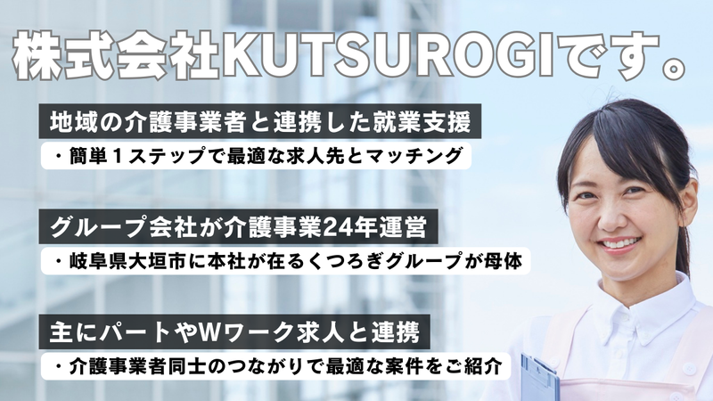 アピールポイント: \こんな方におすすめ!/ ✅️資格を活かしてお仕事したい方 ✅️パート勤務を希望している方 ✅️主婦(夫)歓迎!パートとして家庭や育児と両立したい方 ✅️WワークOKでスキマ時間を有効活用したい方 ✅️20代、30代、40代、50代、など中高年層を含む幅広い年代が活躍中! ✅️夜勤専従など、生活スタイルによって様々な勤務形態を紹介可能です! ✅️デイサービスやグループホーム、特別養護老人ホームなどでの勤務を希望する方