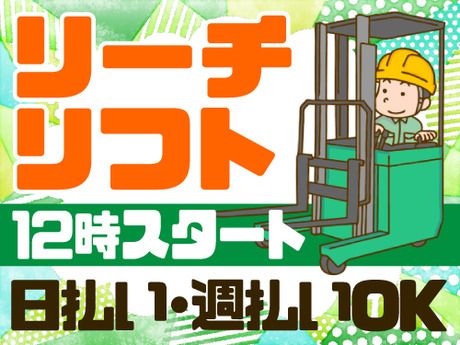 仕事内容 倉庫内でのフォークリフトオペレーター(飲料品) 人気飲料を扱う倉庫内で、 フォークリフトを使ってパレット単位の仕分け作業をお任せします! ※フォークリフト作業は全体の5割程度 ※リーチリフトを使用します 頼れる先輩スタッフが丁寧に指導するので、 フォークリフトの経験が浅い方も安心してスタートできます。 風通しの良い働きやすい環境です! <働きやすい環境です> 経験が浅い方もすぐに馴染める、サポート体制の整った職場です。 <給与のお支払いについて> アールシースタッフでは全てのお仕事(派遣)で給与前払いが可能! ※お仕事が終わった最短翌日には指定口座に振り込み可能 ※スマホやPCから専用サイトにログインして24h申請可能