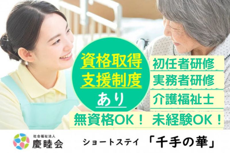 【仕事内容】 社会福祉法人慶睦会 ショートステイ千手の華にて、ご入居様の生活サポートをしていただく介護スタッフを募集します。 ■仕事と子育ての支援に積極的な職場です。 ・お子さんの急な病気、学校行事のお休みにも対応いたします。 ・子育て中のための制度が多くあります。 ■具体的な仕事内容 ショートステイにおける入居者様の介護業務全般をお願いします。 (食事介助・入浴介助。排泄介助・その他日常生活に関する支援など) ●早番、日勤、遅番 ・食事や入浴、排泄の介助 ・バイタルチェック ・レクリエーション など ●夜勤 ・月5回程度 ※もっと稼ぎたい!などご希望があれば夜勤回数を増やす事が可能です。 ※夜勤回数の増減はご相談に応じます。 【PRポイント】 ・心からの感謝の言葉を貰えるお仕事です ・一人ひとりと向き合う寄り添った介護が可能 ・毎月の希望休OK!有給休暇も高取得率! いきなりのご応募は不安という方も是非施設見学だけでも歓迎です。 ご質問などもお気軽にお問い合わせください。 ご連絡・ご応募お待ちしております ★Instagramでも発信をしています!『 慶睦会 インスタグラム 』で検索してみてください!