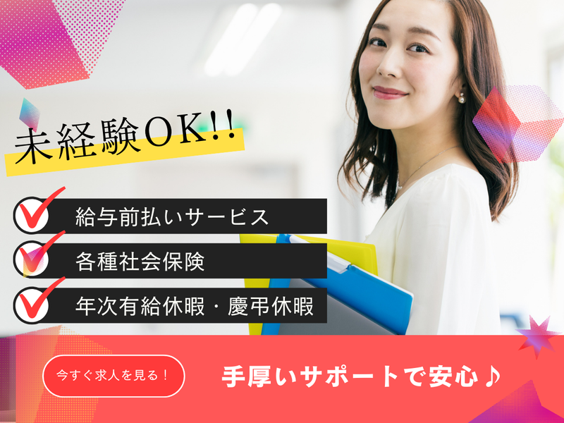 企業のセールスポイント ━━━━━━━━━━━━━━━━━ ⋱ このお仕事のここがポイント⋰ ━━━━━━━━━━━━━━━━━ 当社は、東証プライム上場企業 「トランスコスモス株式会社」の 100%出資子会社として、人材派遣や紹介、 業務受託まで幅広いサービスを提供しています。 ◆充実の福利厚生◆ ≪給与前払いサービス≫ 働いた分の給与の一部をWEBで簡単に 前払い申請でき、給与支給日を待たずに 受け取れます。 ≪各種社会保険≫ 雇用保険、厚生年金保険、健康保険 労災保険に加入(条件あり)。 (トランスコスモス健康保険組合のサポート) 年1回の健康診断、インフルエンザ予防接種補助 軽井沢などの保養施設の利用特典。 ●年次有給・慶弔休暇 ●Oisix割引(食材宅配サービス) ●CaSy割引(家事代行サービス) など、プライベートの充実も支援します。 その、安否確認システム、 ベネフィット・ステーション加入も可能 ※加入条件あり