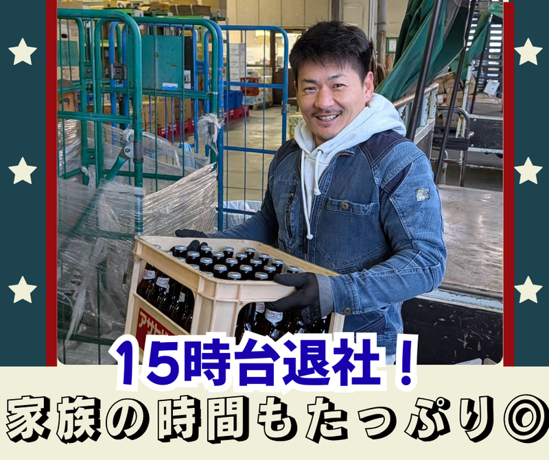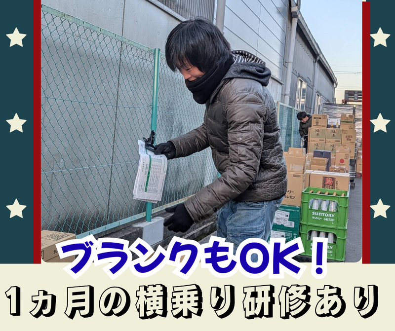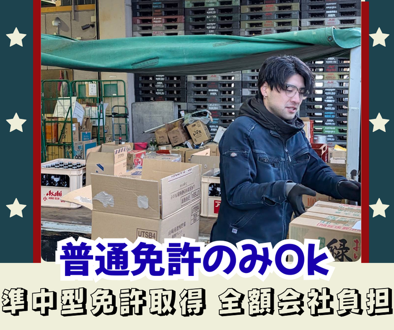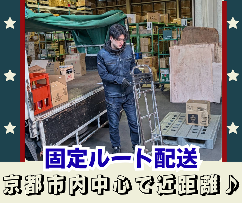 仕事内容 ☆+..+☆+..+☆+..+☆+..+☆+..+☆ *月給30万円〜!家族を支える安定収入◎ *15時退社あり!夕飯は必ず家族と一緒に *社長が超フレンドリー!雰囲気バツグン♪ *普通免許でもOK!免許取得支援あり★ ☆+..+☆+..+☆+..+☆+..+☆+..+☆ 【仕事内容】 普通免許で運転できる2tトラックでお酒などの配送をお願いします。大手ディスカウントストアなど固定ルートの配送です! ★1日の配送件数は10〜20件程度! 京都市内が中心・福知山市・舞鶴市方面滋賀県(栗東市・長浜市)など ★高速利用OK!事故等のペナルティはありません。 ★車内喫煙OK!好きな音楽を聴きながら自分のペースで◎ / 「免許はあるけどトラックは初めて…」 そんな方もご安心ください◎ \ 免許を取ってから10年くらい経つけど、トラック運転はしたことはない…そんな方も大歓迎! いきなり一人ではなく、まずは1ヶ月の横乗り研修から。 2t車は小回りが利くので、住宅街や店舗への配送もスムーズ!全くの未経験の方には免許取得支援もあります◎ 【1日の流れ(例)】 6:30/出社!久御山の拠点へ向かいます。 ↓ 7:30/積み込み&出発! ↓ 12:00/午前の配送終了!休憩時間◎ ↓ 13:00/午後の荷物を運びます。 ↓ 15:30/会社に戻って終了!お疲れ様でした♪ ▶オフィスに戻ってからの「待機」は一切なし!仕事が終わればサッと帰れる社風です。 特に月・水・土は、さらに早い13時~15時に帰宅できることが多いですよ◎ ―・―・―・―・―・―・―・―・― ◤ ̄ ̄ ̄ ̄ ̄ ̄ ̄ ̄ ̄ 家族や趣味の時間が 「当たり前」になる! __________◢ 月・水・土は13時〜15時頃には仕事が終了! お子さんの送り迎えに行ったり、夕飯を一緒に食べたり… 前職で夜遅くまで働いていた方からも「子供の成長を見逃さなくなった」と大好評です♪ ◤ ̄ ̄ ̄ ̄ ̄ ̄ ̄ ̄ ̄ 創業60年超え! 安定基盤で安心です◎ __________◢ 取引先とは30年以上の長いお付き合いがあり、仕事量は常に安定。 月給30万円〜に加えて賞与や家族手当も充実しており、将来を見据えて働ける環境です。 社長は「従業員の生活が第一」と考える、人情味あふれるお人柄です! 【会社概要】 設立 創業:1957年 資本金 1000万円 所在住所 京都府京都市南区久世中久世町4-78 事業内容 一般貨物自動車運送業(酒類・ブライダル衣装の配送)