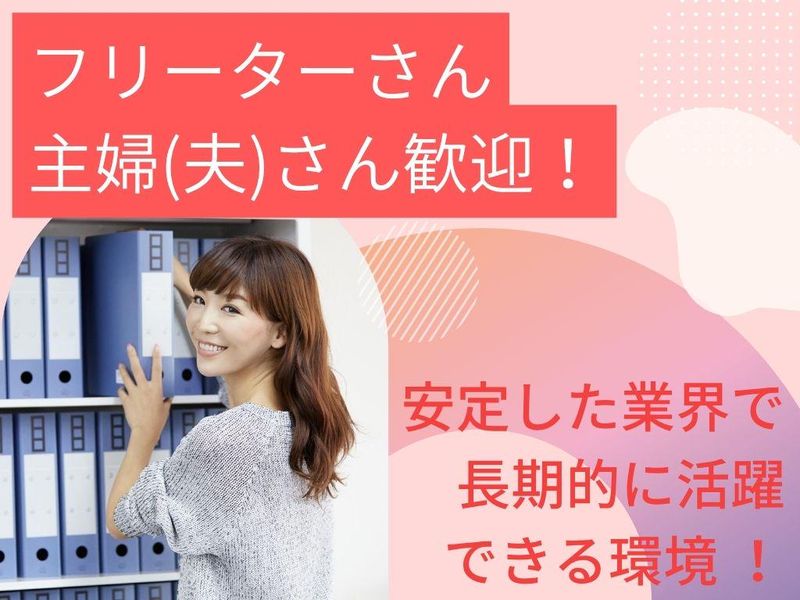 求めている人材 未経験者歓迎!経験者歓迎! ブランクOK! Excelを活用しての作業ができる方は特に歓迎! ✅学歴不問♪長期勤務大歓迎! ✅現場では、20代、30代、40代、50代、 60代の若手・中高年からシニアまで 幅広い年齢の方が活躍しています。 ✅扶養範囲内で働く主婦パートさん(主夫)、 Wワーク・副業で働くフリーターさん、 中高年の方も多いです。 ✅週3、4日~勤務OK!シフト制 フルタイム(5日)歓迎 正社員・契約社員・アルバイト・パートなど 雇用形態に関係なく 一般事務 の経験を活かしたい方を歓迎! また、エクセル・ワードを使用した業務経験 営業事務、経理事務、総務事務、 人事事務 の経験がある方も歓迎! さらに、未経験でもパソコン操作が得意な方、 コツコツ作業が好きな方、 サポート業務が得意な方 ならスムーズにスタートできます♪ 「事務職としてキャリアを積みたい」 「経験を活かして安定して働きたい」 「働きやすい環境でプライベートと両立したい」 そんなあなたにピッタリのお仕事です!