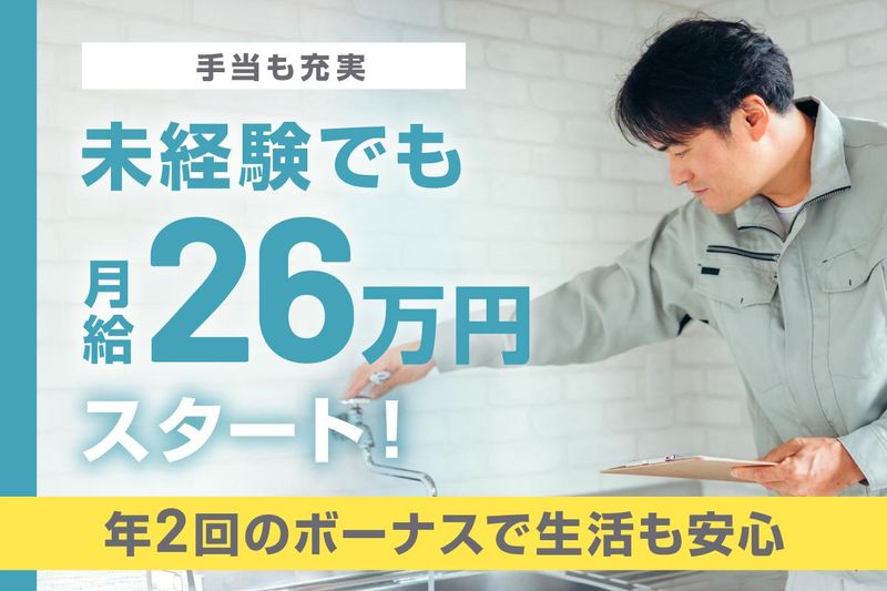 仕事内容 【未経験歓迎!人柄重視!】 【面接1回/日勤のみ】 【月給26万〜+賞与】 【車通勤OK/転勤なし】 【資格は会社が支援】 ◆仕事は何するの? 戸建て・マンションの 水回り設備の点検や修理。 まずは先輩の補助からお任せ! ◆具体的には ・道具の準備、片付け ・点検のサポート ・部品交換の補助 ・水漏れ等の確認 慣れたら少しずつ できる範囲を広げます。 ◆1日の流れ(例) 08:00 出社・準備 09:00 現場作業 12:00 昼休憩 13:00 作業 16:30 帰社・片付け 17:00 退勤!お疲れ様! ◆面接について 応募後、当日〜翌営業日に こちらからご連絡します。 面接候補日を2つ返信ください! 服装自由。手ぶらでOK。 ざっくバランに話しましょう。