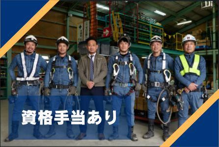 求めている人材 【必須条件】 *要普通自動車免許(AT可) *電気工事士の資格をお持ちの方 【その他】 *業界未経験歓迎 ◆他にも活かせる資格 ・準中型免許 ・高所作業車 ・電気工事施工管理技士 ※持ってなくても全然OK!