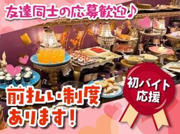 仕事内容 大人気スイーツビュッフェ! 「アリス」でのキッチンのお仕事をお任せします! 簡単なお菓子作りのお手伝いからスタートするため、 未経験さんも安心して始められますよ* 【具体的なお仕事は】 *先輩の調理業務のお手伝い *食洗機を使った洗い物作業 *食材の仕込み作業 *スイーツの盛り付け 上記のような簡単なお手伝いから 少しずつお任せしていきます! 最初は食材の保管場所の確認など 基本から丁寧にお教えしますので、 製菓&バイトデビューの方も安心* 少しずつスイーツ作りに挑戦することになっても、 先輩スタッフがサポートをしますので、 分からないことや困ったことがあれば、 いつでも気軽にご相談くださいね! 楽しく&安心して働けるよう、 しっかりとフォローします* <働きやすい!シフト自由!> お仕事は週1日~、1日4時間~OK! 学校やWワーク、家事との両立がしやすく、 学生さんやフリーターさん、主婦さんなど、 幅広い世代のスタッフさんが活躍中です! <急な出費も安心!> 基本的には毎月20日に給与をお支払いしますが、 前月の稼働分を月初にお支払いできる 「前払い制度」もご用意しています! 飲み会が立て続けで給料日まで間に合わない、、、 急に欲しい物ができてお金が必要になった。。。 などの緊急事態にも柔軟に対応できますよ!