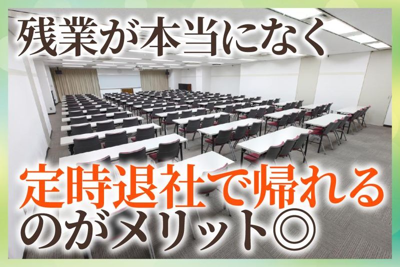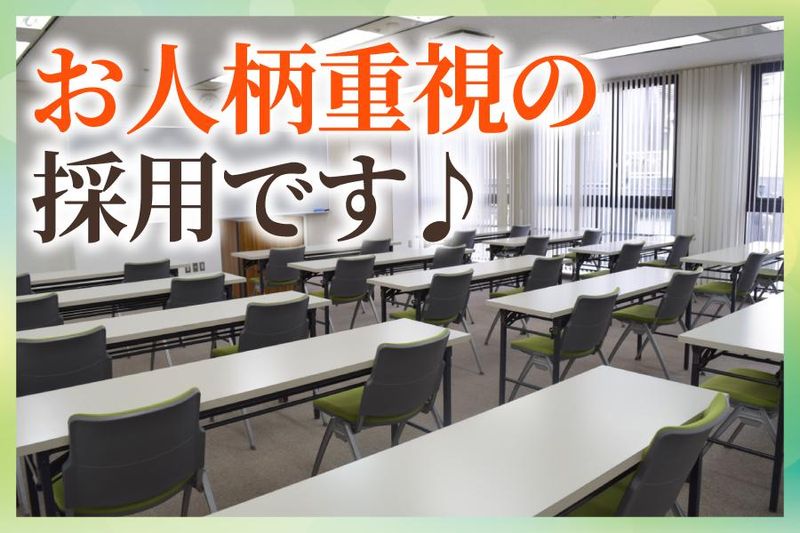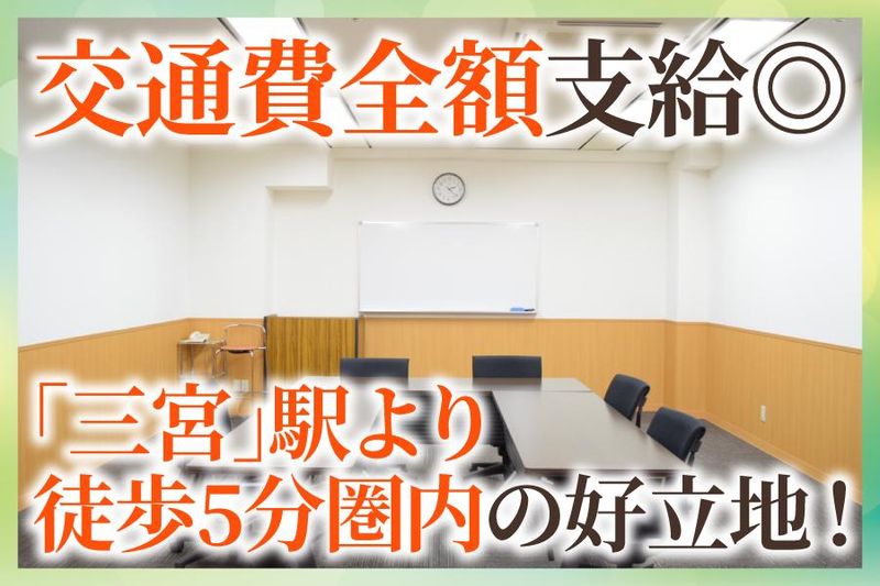仕事内容 <夕方からの時短勤務!年間休日119日◎> <未経験大歓迎!幅広い年代のスタッフが活躍中♪> <徒歩5分圏内の好立地!> 貸会議室の運営全般を担うお仕事です。 まったくの未経験から始めたスタッフも多数活躍中! 残業はほぼ無く、休みもしっかり取れる体制なので 無理なく続けることができますよ。 月2回以上は連休を取れる&平日休みもOKなので プライベートの予定も事前に確保できます◎ 各線・三宮駅、神戸駅から徒歩5分圏内とアクセスしやすい立地。 お仕事終わりの買い物にも便利です。 【勤務地】 ・三宮研修センター 兵庫県神戸市中央区八幡通4-2-12 FR2ビル ・神戸駅前研修センター 兵庫県神戸市中央区中町通2-3-1 上記、シフトにより双方共に勤務となります。 ※固定ではなくシフトにより変動 ==================== 【具体的な業務内容】 ◆会場設営・清掃 ◆備品設置 ◆会議室の予約受付 ◆電話応対 ◆書類作成 ◆簡単な経理業務 ◆備品管理 ◆会場の飲食手配 ◆受付業務 など。 【チームプレーの見せどころ】 会場設営では、基本、仕様書通りに 机・椅子・マイクなどの使用備品をセッティングします。 お客様によっては、 大まかな配置のレイアウトをご希望される方もいらっしゃるので、 ご要望に応じてスムーズに行き来できるよう 会場内の導線を考慮することも求められます。 慣れてきたら、ご予約案件を実際に 部屋に割り振っていく仕事もお任せします。 できる限り空室がでないよう、 まるでパズルのように組んでいきます。 全室満室にできたときは、達成感があります! お客様とやり取りするため、丁寧で正しいマナーを心がけてください。 【リピートが、やり甲斐に繋がる】 会議室をご提供するといっても、私たちの仕事は多岐にわたります。 まずは、お客様のご要望にしっかり対応するため、 使用方法からレイアウトまで打合せ。 他にも、予約受付・お弁当の手配、会場設営など、 当センターを運営するための幅広い業務をこなし、 万全の体制でお客様をお迎えします。 もちろん、すべての業務を1人で対応するのではなく、 スタッフみんなで協力し合いながら行います。 チームワークを大切に、細やかに準備を整えることで お客様の満足度に繋がり、 リピートという形で評価が返ってきます。 業務はみんなで協力して声をかけ合い効率よく進めます。 もちろん慣れるまでは、作業のやり方や流れを 先輩スタッフがしっかりお教えします。 作業中でも気軽に質問できる雰囲気ですし、 コツがわかってきたら、自分から動けるようになりますよ。 【お客様目線で柔軟な提案を】 基本的な予約受付は、 規定事項にもとづいて行いますが、 お客様への細かい対応やご案内は、 それぞれの裁量にお任せしています。 企業様ごとに様々なご要望があるので、 打合せの際にはTPOに合ったご提案を心がけてください。 まずは少しずつ運営経験を積みながら、 日々、改善点などを考えて取り組んでいきましょう。 お客様の立場に寄り添い、 「この人数であれば、この規模の会場がおすすめです。」 「こちらの備品を使用してはいかがでしょうか?」 など、開催がスムーズなものになるようなサポートをお願いします。