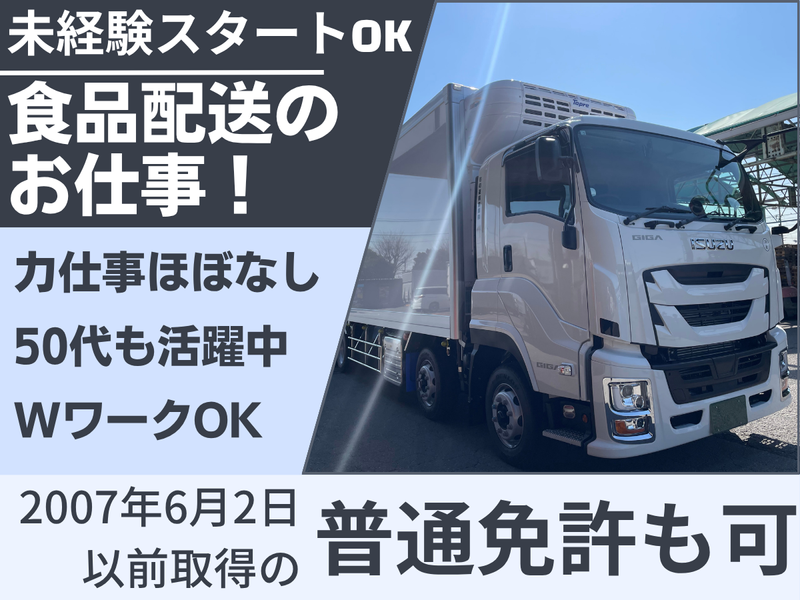 仕事内容 ⭐勤務日数・勤務曜日は相談OK! ⭐夜間の短時間でWワークにも◎ ⭐力仕事少なめ=身体への負担少なめ◎ ⭐未経験からのスタートもOK! ⭐30代~60代の方が中心に活躍中! ―――――――――――――――――★・。 【4tトラックでの食品センター間配送】 関東エリア内での食品配送をお任せ◎ パレットを使用しての積み降ろし作業 なので力仕事は比較的少なめ◎ ✅景気に左右されず仕事量安定 ✅コース設定はシステム化され、 無理のないルートを組んでいます。 予定時間をすぎることはほとんどなし! ⭐配送エリア ┗埼玉県川口市から埼玉県川越市 配送業務経験者も大歓迎✨ もちろん、短距離や中距離、長距離など 配送距離問わずセンター間配送など 貨物配送・商品配送の経験がある方は 経験やスキルを活かして活躍いただけます! 配送未経験・運送未経験の方も大歓迎! 新人研修を本社にて4時間実施しており、 ルールやマナーだけでなく 安全に運行できるような教育制度もあり 初めての方も安心して業務を 開始できる環境が整っております◎ また、はじめは先輩の付き添いの元 スタートするのでご安心ください♪ もちろん経験者も大歓迎です✨ 近場・短距離、中距離、長距離など 配送距離に関わらず貨物配送や 商品配送、センター間配送などの 経験がある方も多数活躍しています! 配達やデリバリーの夜勤・単発バイトの 経験を活かす方も在籍しています。 ――――――――――――――――――― ✨従業員数280名以上! 定着率が高く人手不足の心配もなし♪ ――――――――――――――――――― ここまでお読みいただき ありがとうございます! 応募はもちろん、 お問い合わせもお待ちしております。 ➿0120-597-567 (平日9時~17時)