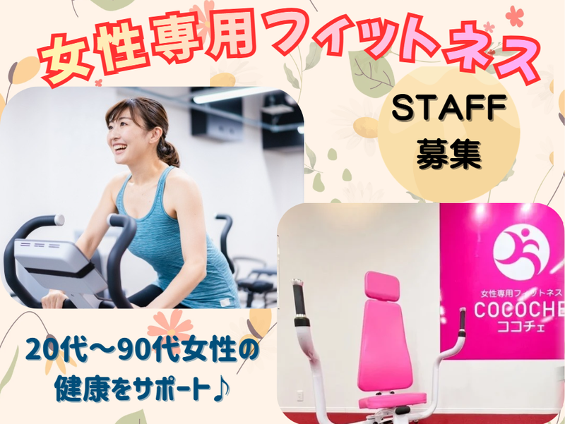 仕事内容 <宇土エリア>で昨年6月OPENの 女性専用フィットネスジム「ココチェ」 【運動経験は必要ありません】 ◎人と接することが好き ◎通いやすいエリアで働きたい ◎子育てしながら働ける仕事がしたい ◎生活スタイルに合わせて活躍できる仕事を探している ◎ひとを支える事やサポートすることが得意 ◎明るい雰囲気の職場で働きたい ◎健康や運動にちょっと興味がある 上記にひとつでも当てはまる方は ココチェが居心地よい職場として 自分らしく働けると思いますよ! 実際に20代~40代スタッフが 未経験から入社して活躍しています☆ まずは少しでも興味を持っていただけたら お気軽に見学に来て下さいませ! 【お任せしたいお仕事】 ◎受付フロント業務 安心して取り組める環境になるように 笑顔でお客様をお迎えしてください。 簡単な受付対応や事務作業もあります。 ◎お客様の運動サポート 1回30分と限られた時間で 健康を意識して体を動かしに来られるお客様。 <がっつりトレーニングのサポート> ということではなく 「このマシンはどう使ったらよいですか?」 「不安なので最初だけ少し支えてください」 というようなサポートが中心。 なので運動経験がなくても安心☆ お客様とコミュニケーションをとりながら サポートすることを心がけていただければと。 自分のペースで体を動かしていくお客様が 体調などに気を配りながら無理なく 心地よい時間を過ごせるような空間を 一緒に築いていきましょう! ◎無料体験参加者のフォロー まずは無料体験で来られてから 会員となる方が圧倒的に多いのがココチェの特徴。 初めて来られたお客様に寄り添って 入会されるまでのサポートをお願いします! もちろん「ノルマ」一切ありません! ◎働きやすい職場 日差しも入る明るいフィットネスジム。 談笑しながら体を動かす方も多いのが特徴。 女性専用でもありほんわかとした雰囲気だから 安心して落ち着いて働けるのが嬉しいですね。 また1回30分という限られた時間ですが また来るね~と笑顔で挨拶していただける事も多く お客様との距離感も近くて毎日気持ちよく働けますね。 ◎土曜日勤務について 土曜日は13時で営業終了となりますので 以降は事務作業や定期清掃 ディスプレイの飾りつけなどが仕事。 お知らせポスターを自分たちで作ったり クリスマスなどハロウィンなど季節ごとに飾りつけをしたり。 結構みんなで楽しんで取り組んでます♪ <ココチェとは?> 女性の健康と美容を意識して 昨年6月、宇土に1号店をOPEN! 仕事の合間や買い物ついでになど ふらっと空いた時間で立ち寄って 1回30分で軽く体を動かせる場所です☆ <会員さんはどんな方?> 会員様の年齢層は20代~90代と幅広いのも特徴 自分のペースで無理なく運動していける環境。 なので本格的に鍛える!ではなく 体を動かすクセを付けていくという トーンの方が合ってます! また優しいお客様が本当に多いので 気軽に会話しやすい雰囲気だと思います。 <厚労省認可の家庭用治療器なども無料利用> 弊社は元々美容や健康を通して 世の中に貢献していくという想いで 会社を運営しております。 なので会員のみなさまには 家庭用医療機器が無料で使えるように! 実はこれを目当てに来られている 会員さんも結構いらっしゃいます! 頭痛・肩こり・不眠所の緩和に良いとされて 厚労省からも認可されている機器です☆ 操作はボタン一つだから簡単で安心! もちろんお客様への売り込みは必要なし! そして従業員も空いた時間でいつでも利用OK! <この仕事のやりがい> 日々コミュニケーションをとっていくことが大事。 だからこそ 「毎週ココチェに通うのが楽しみ} 「少し体が軽くなってきた」 「今日もサポートしてくれてありがとう」 たくさんの声をかけていただける事が 何よりもやりがいであり励みになります! もちろん一人一人「年齢・運動経験・体力・目的」も 異なるので、その方にあった声かけやサポートなど 考えながら対応するのは少し大変ではあります。 その分お客様に笑顔が増えたり変化がでてきたりを 自分の事のように嬉しく思えるのだと思います! またスタッフ同士でもコミュニケーションや共有を増やして 全員で助け合いながらお客様に対応できるのも ココチェならではの良さだと思います! 自分自身も元気になっていきながら 女性の健康や美容をサポートしていける。 そんな仕事にチャレンジしてみませんか?